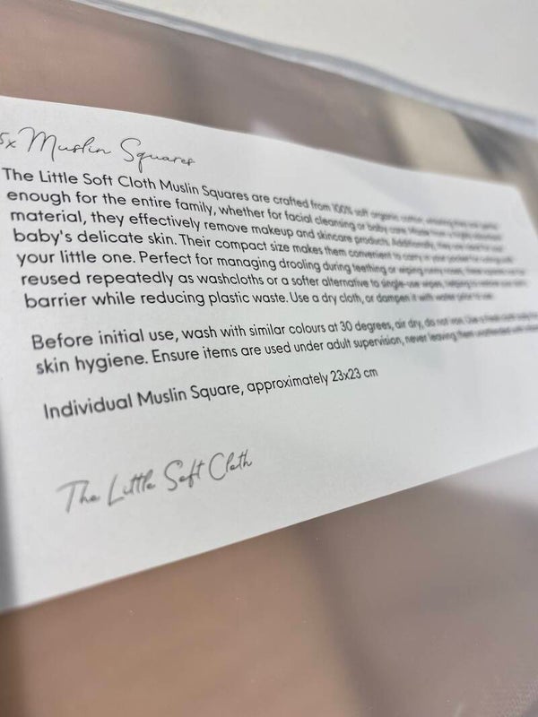 Each muslin square measures approximately 23 x 23 cm and is crafted from thick double-layered, 100% organic muslin cotton—soft, breathable, and kind to delicate skin. Presented in a reusable zip pouch, ideal for storing damp cloths or other essentials on the go. Complimentary gift wrapping is included for a thoughtful finishing touch.